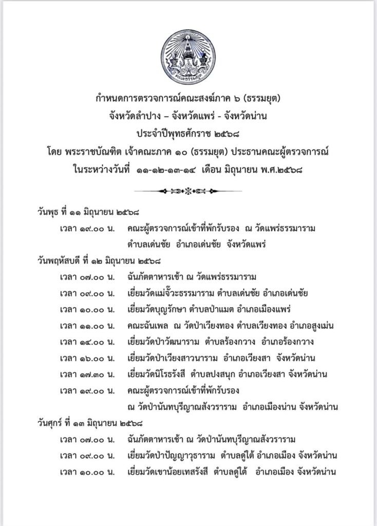 เจ้าคณะภาค ๑๐ เข้าตรวจเยี่ยมวัดในเขตปกครองจังหวัดแพร่